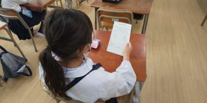 でも後から「知らない人に見られてしまう。」「あやしい人が家に来るかもしれない。」と考え直す子も出てきました。ハガキで聞かれていたのは「個人情報」といって大切なもので、簡単に人には教えてはいけないという話を聞いた後には、「やっぱりさっきのハガキ、出したくない〜。」という声も聞かれました。
