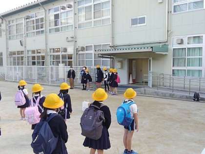 学年ごとに歩いて大阪城公園に出発です。