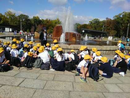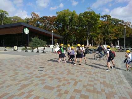 たてわり班に並び替えて、オリエンテーリングのスタートです。