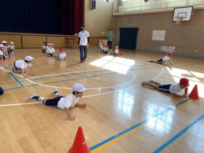 保育園や幼稚園でやったことがあると張り切っていた子どもたち。基礎になる動きから取り組みました。