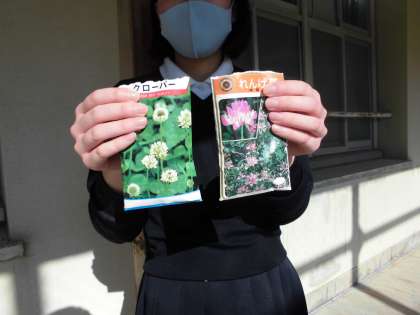 この2つの植物は成長するときに、ほかの植物に必要な栄養をつくり出してくれます。もちろんかわいらしい花も咲きます。ひょっとしたら四つ葉のクローバーも‥。 芽が出るのが、楽しみですね。