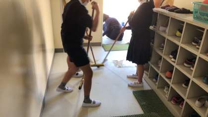掃除の仕方を見直して、場所によって掃除の工夫ができることはないかを考えて取り組みました。