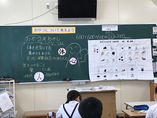 栄養指導の先生に来ていただき、おやつについて考えました。