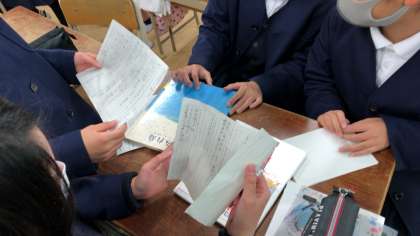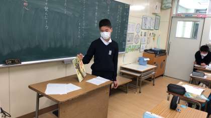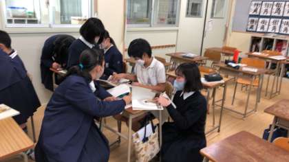 同じところと違うところ、印象に残った場面、読んでほしいところなどをワークシートに書いて紹介しました。