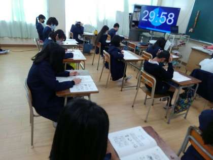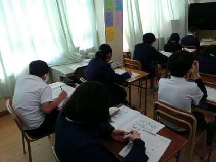 聞き取り問題では、問題用紙に描かれた絵を見ながら問題の発音を聞いて考え、答えていました。