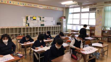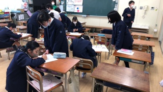 代表委員会の時間、縦割り班のリーダーがお店の看板作りをし、お店紹介の文章を考えました。