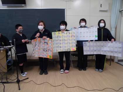 全校のみんなが書いた調理員さんへの手紙を、4年の給食委員が代表としてわたしました。
