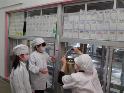 今日の給食の時間には、さっそく給食室に掲示してくださっていました。