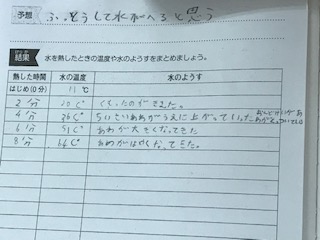 水を熱したときの変化を2分ごと記録しています。熱する前の水温は10度。