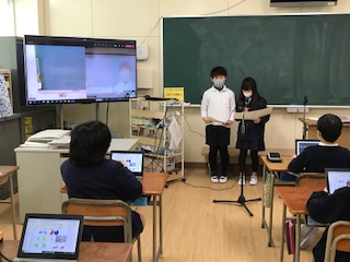 東中本小学校と会議アプリを使いながら、合同で国語の授業をしてきました。