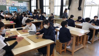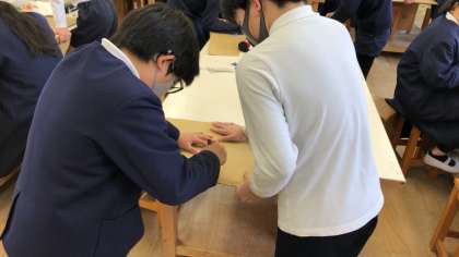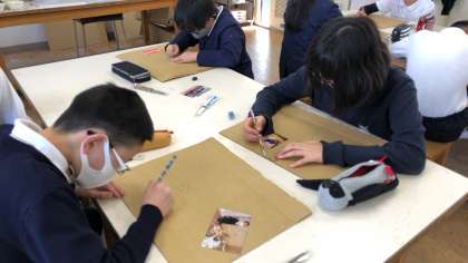 デザインを鉛筆で描いたら、段ボールカッターで切ります。