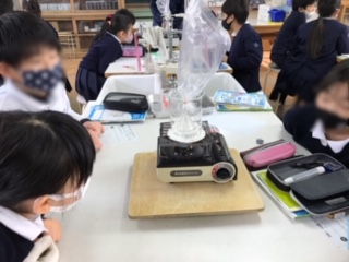 今回の実験でポリエチレンのふくろにふっとうしたときのあわをためることにしました。