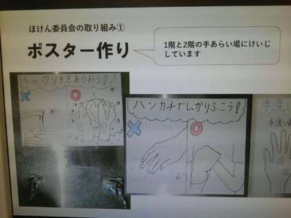 保健委員が手あらいについて1年間取り組んだことや、手あらいの重要性について発表しました。