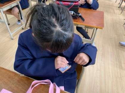 せっかく付けられたと思ったら裏返っていたり、斜めになっていたり随分苦戦していましたが、これから練習して上手につけられるように励ましたいと思います。