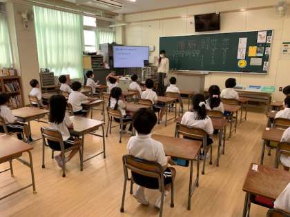 はじめに教室で保健室の使い方や、手の洗い方などを保健室の先生に教わりました。