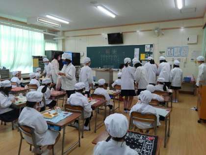 手際よく親切な6年生の動きを、1年生はあこがれの目で見ています。