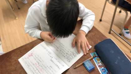 友だちが工夫しているところをノートにメモして、発表会後、いいところを出し合いました。