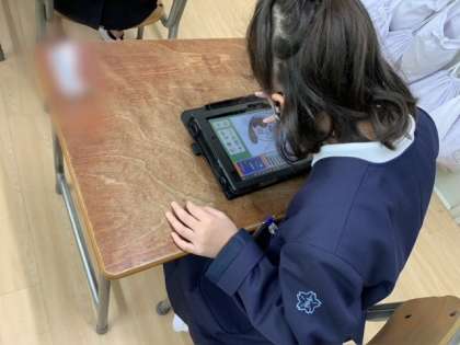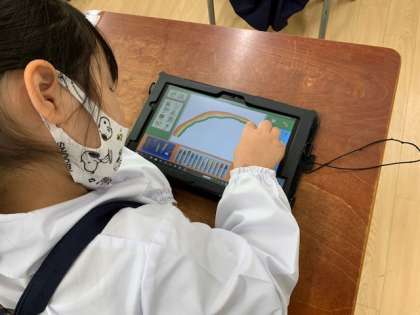 タブレットにも少しずつ慣れてきた様子で、今日はカメラアプリで写真を撮ったり、お絵かきアプリを使うことができるようになりました。