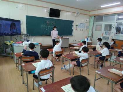 「きょうしつくいず」や「こんなひといるよくいず」があり、1年生も楽しく答えていました。