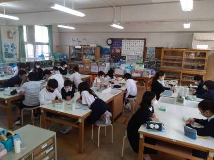 種子の発芽には、水・温度・空気は関係しているのかを調べるために、班で協力しながら準備をしました。
