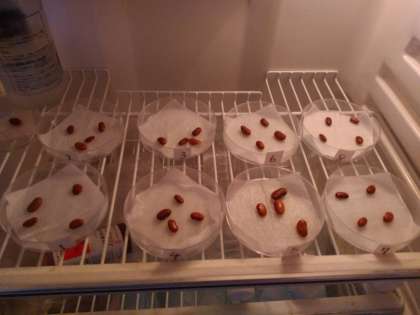 7班から8班と冷蔵庫の中のインゲンマメの写真です。
