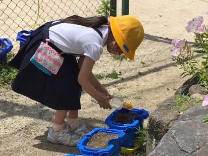 1年生は、生活科の学習であさがおとひまわりを育てることにしました。