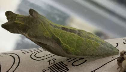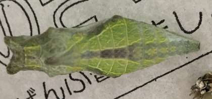 虫かごの底に敷いていた紙の裏側に回ってサナギになったので、ビックリです。