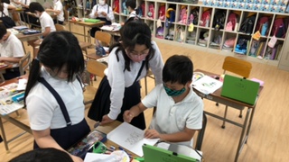 作ったあと、友だちに特ちょうや役目、特技などを紹介しました。
