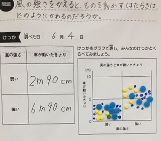 風が強くなるほど、ものを動かすはたらきは大きくなるということが実感できた学習活動になりました。