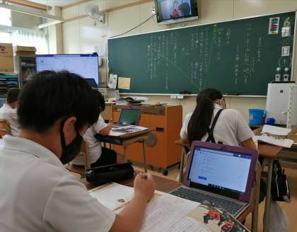 自分の身の回りで、自分を支えてくれている人について思い出し、チャットを使って意見を交流しました。