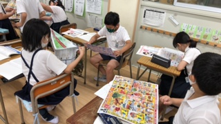 身の回りの広告やチラシを読み、表し方の工夫を見つけていきました。