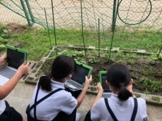 タブレットのカメラでとり、教室にもどってからワークシートに成長の様子をまとめました。