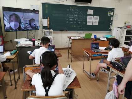 東中本小学校の5年生と今里小学校の5年生が、チームズを使って遠隔交流を行いました。