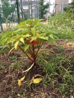 1学期中に間に合わなかったホウセンカの花がやっと咲きました。