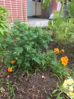 マリーゴールドも初めに咲いた花はしぼんでいます。そのうち種が実ることでしょう。