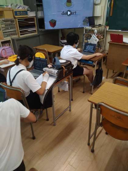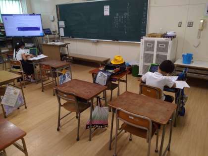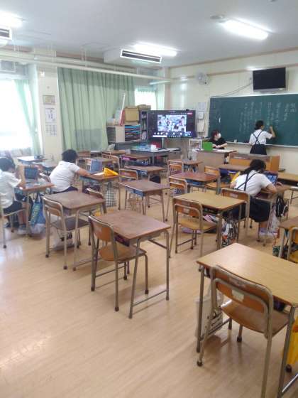緊急事態宣言のため、各学年で教室からリモートで実施しました。