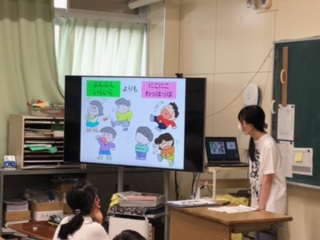 発育測定の前に、保健の先生から心とからだのつながりについて、話を聞きました。