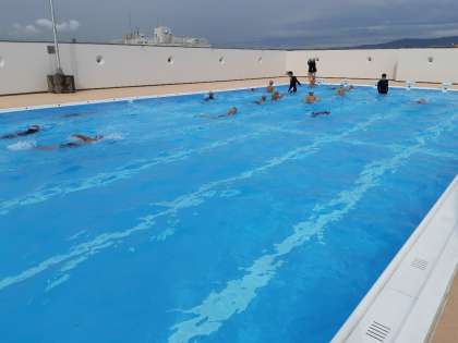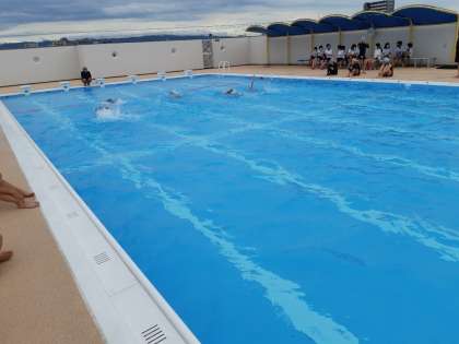 最後に泳力テストをしたら、たくさんのこが1学期よりも長く泳げていました!