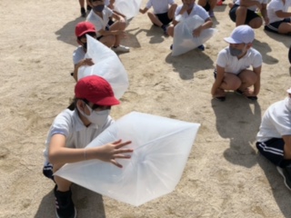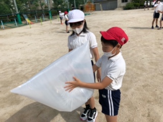 ポリ袋に空気を集めてとじこめて、さわってみます。