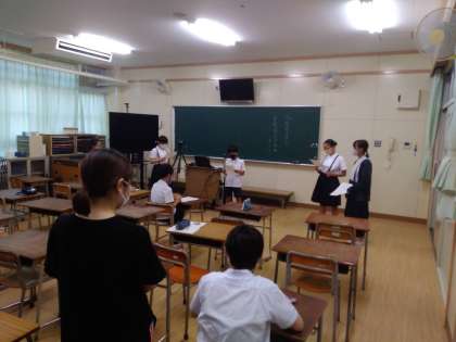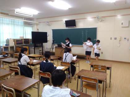 10月1日に予定している全校遠足に向けて、代表委員会の児童が役割分担をして開会式と閉会式の練習をしました。