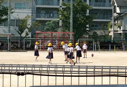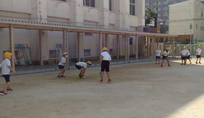 昼間もだいぶ過ごしやすくなり、お外で元気に遊ぶ子が増えてきました。今日の休み時間は、みんなでフリスビーやドッジボールをしていました。