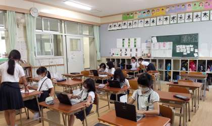 教室ではタブレットや自由帳をしてゆっくり過ごしていました。