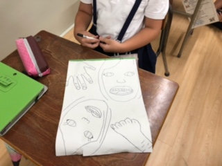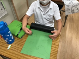 下書きした用紙を板版へくっつけ、カーボン紙を下に入れてなぞりました。