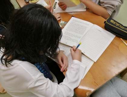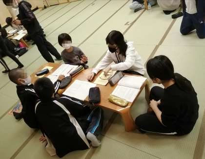 今日、平和記念資料館や碑巡りで調べてきたことを班のみんなで整理しました。