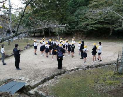 校長先生から今日一日の修学旅行生としての心得を学びました。