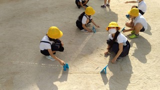 鏡ではね返した日光がまっすぐ進む様子をしっかりと見ることができました。そして、はね返した日光をつないで、その進み方を調べることもできました。