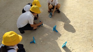 一人目から二人目にはね返した日光をつなぎ、うまくいったグループは、さらに三人目につなぐことができました。