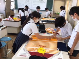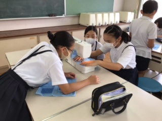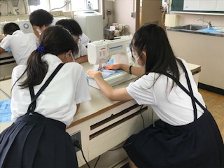 家庭科の学習でエプロン作りをします。