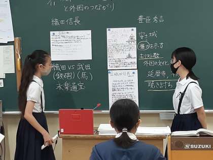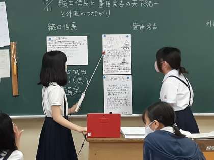 天下統一へ動いた時代の二人の武将、外国とのつながりをそれぞれ調べ友達に伝えます。