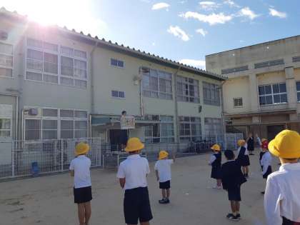 運動会が近いので、校長先生から、ラジオ体操のワンポイントレッスンを受けました。